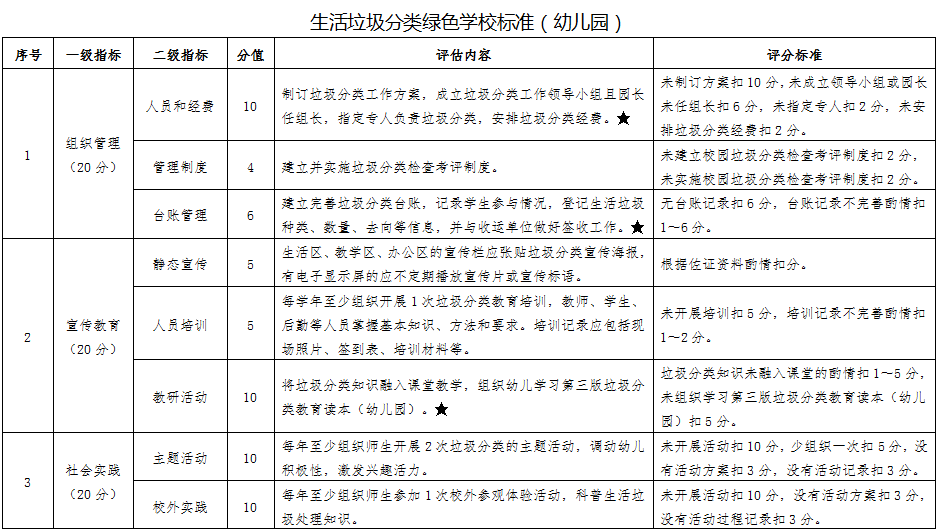 2.學(xué)校(含幼兒園、中小學(xué)和高校)。開展生活垃圾分類且成效顯著,具體條件詳見《生活垃圾分類綠色學(xué)校標(biāo)準(zhǔn)》。