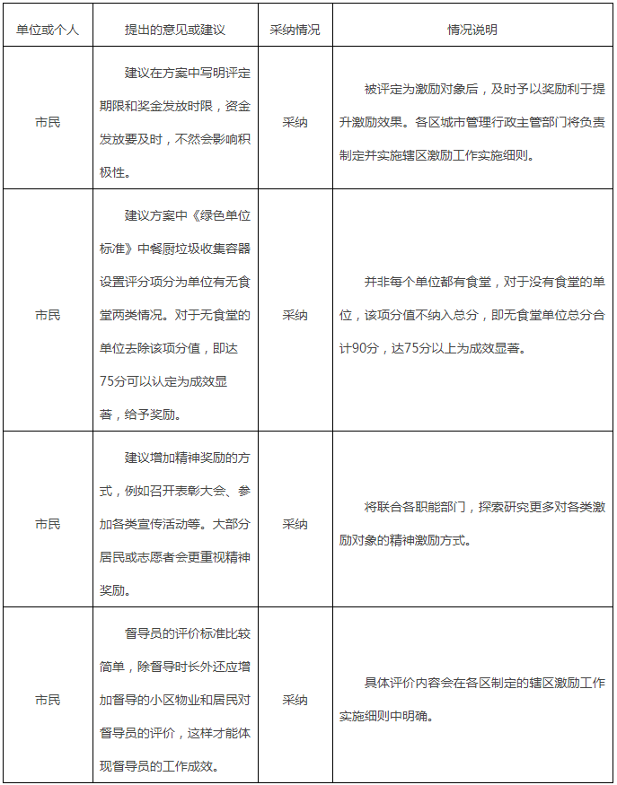 以上為征求意見稿的內(nèi)容。意見征集時(shí)間為5月30日至6月14日。現(xiàn)將征求意見采納情況匯總?cè)缦拢?p style="text-indent: 2em;">