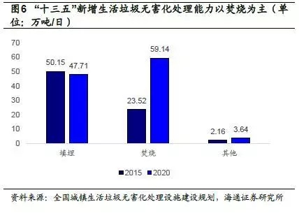 1.垃圾無(wú)害化處理缺口大,“十三五”新增處理能力以焚燒為主