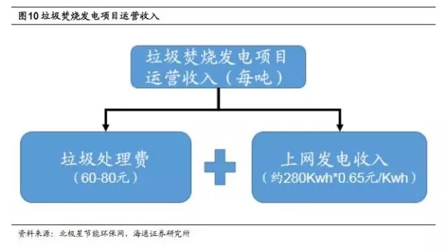 BOT模式下,垃圾焚燒項(xiàng)目的收入主要來(lái)自建設(shè)階段的工程收入和運(yùn)營(yíng)階段的運(yùn)營(yíng)收入。垃圾焚燒發(fā)電項(xiàng)目運(yùn)營(yíng)階段收入主要為垃圾處理費(fèi)(政府補(bǔ)貼)以及上網(wǎng)發(fā)電收入。不同項(xiàng)目的垃圾處理費(fèi)價(jià)格差異較大,大致在50-150元/噸的區(qū)間里,目前大部分項(xiàng)目的平均水平在60-80元/噸。根據(jù)2012年4月發(fā)布的《國(guó)家發(fā)展改革委關(guān)于完善垃圾焚燒發(fā)電價(jià)格政策的通知》,每噸生活垃圾折算上網(wǎng)電量為280千瓦時(shí),執(zhí)行全國(guó)統(tǒng)一垃圾發(fā)電標(biāo)桿電價(jià)每千瓦時(shí)0.65元(含稅,增值稅即征即退);超過(guò)部分電量執(zhí)行當(dāng)?shù)赝惾济喊l(fā)電機(jī)組上網(wǎng)電價(jià)。