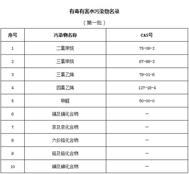 關于發(fā)布《有毒有害水污染物名錄(第一批)》的公告