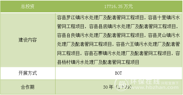 廣西容縣8個(gè)鎮(zhèn)級(jí)污水處理廠工程PPP項(xiàng)目