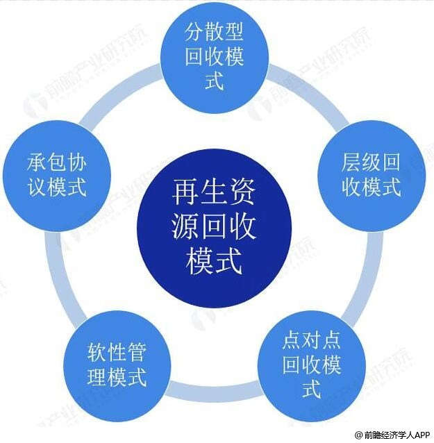 從再生資源回收模式來看,我國主要包括分散型回收模式、層級回收模式、點對點回收模式、軟性管理模式和承包協(xié)議模式五類。其中分散型回收模式是由大量分散回收者、小型初級拆解者、生產(chǎn)作坊,以及數(shù)個廢舊物資集散地組成,分散的回收人員將廢舊物資收集起來,經(jīng)過初級的分類拆解,到廢舊物資集散地出售,此模式最為常見。