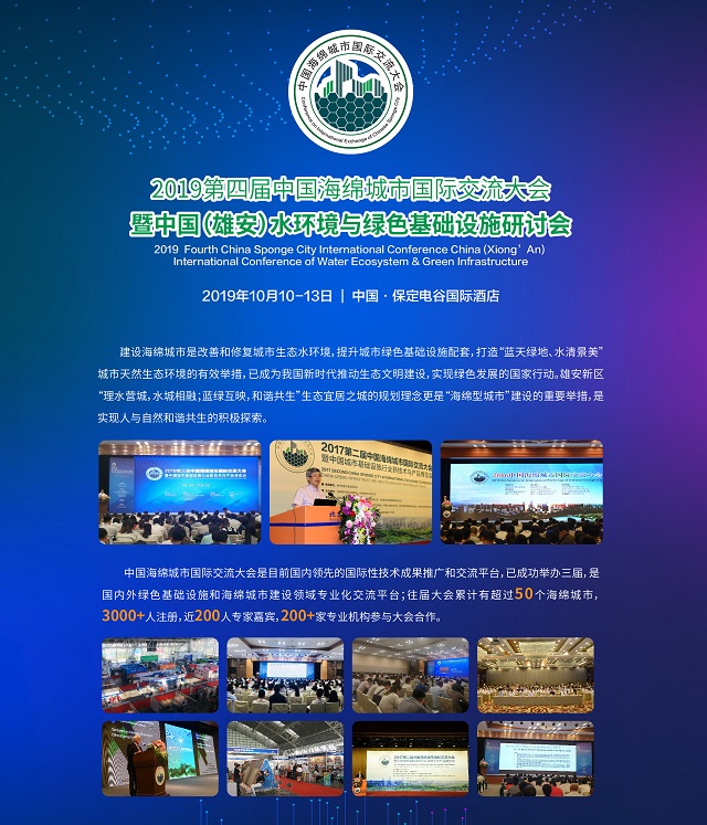 由全聯(lián)城市基礎(chǔ)設(shè)施商會舉辦的“2019第四屆海綿城市國際交流大會暨中國(雄安)水環(huán)境與綠色基礎(chǔ)設(shè)施發(fā)展研討會”將于10月10-13在保定市電谷國際酒店召開,屆時將邀請有關(guān)部門領(lǐng)導(dǎo)、國內(nèi)外專家院士、有關(guān)企事業(yè)單位及媒體代表等出席大會,共同探討我國海綿城市建設(shè)、河湖治理及綠色基礎(chǔ)設(shè)施發(fā)展經(jīng)驗和問題。共享行業(yè)先進技術(shù)產(chǎn)品和理念模式,共謀城市生態(tài)綠色發(fā)展大計。
