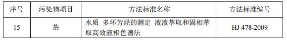 四、 “水污染物濃度測(cè)定方法標(biāo)準(zhǔn)”表中增加廢水中萘的監(jiān)測(cè)分析方法: