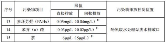二、 表 1、表 2、表 3 中增加表注“注 1):酚氰廢水單獨(dú)處 理,執(zhí)行括號(hào)外排放限值;酚氰廢水與生活污水等其他廢水混合 處理,執(zhí)行括號(hào)內(nèi)排放限值。”