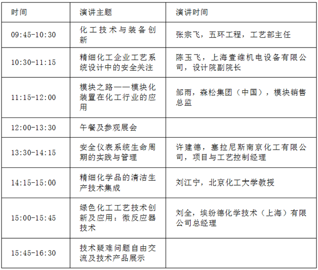 本屆展會(huì)秉承“展中有會(huì)、會(huì)中有展”的傳統(tǒng),展會(huì)期間將同期舉辦“2019微化工技術(shù)研討會(huì)”、“2019化工工藝技術(shù)與裝備創(chuàng)新研討會(huì)”、“ 2019化工廢水處理資源化利用新技術(shù)及工程化設(shè)計(jì)研討會(huì)”等多場(chǎng)會(huì)議論壇,探討行業(yè)熱點(diǎn)問題,交流行業(yè)前沿信息。