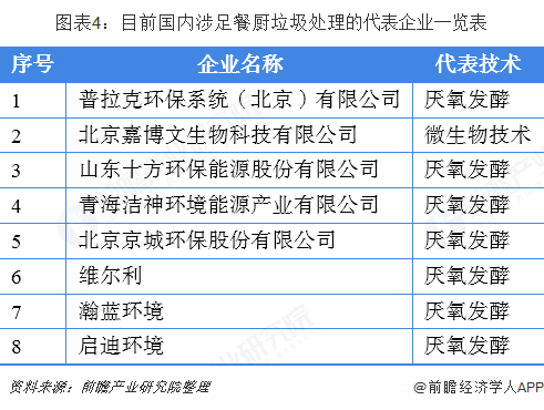 由于我國餐廚垃圾處理行業(yè)尚處于起步階段,從而市場上從業(yè)的企業(yè)數(shù)量不多,競爭格局較為分散,目前涉足餐廚垃圾處理的企業(yè)主要是區(qū)域環(huán)境集團(tuán)型企業(yè)和以提供技術(shù)和設(shè)備為主的企業(yè),且單個企業(yè)的處置規(guī)模較小,還沒有出現(xiàn)具有明顯優(yōu)勢的行業(yè)龍頭。由于資源化處理是餐廚垃圾處理的主流方向,因此,擁有餐廚垃圾資源化處理技術(shù)的企業(yè)未來有望率先受益垃圾分類帶來的餐廚垃圾處理需求放量。