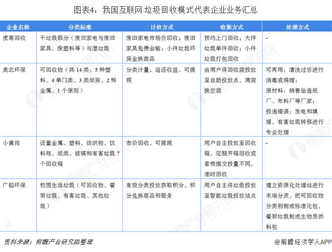 2017年,國家發(fā)改委、住建部制定的《生活垃圾分類制度實施方案》中鼓勵“互聯(lián)網(wǎng)+”模式等創(chuàng)新機制,來實現(xiàn)線上信息流與線下物流的統(tǒng)一。垃圾分類主要涉及到分類投放、分類收集、分類運輸和分類處理四個環(huán)節(jié),各類平臺及APP可以在互聯(lián)網(wǎng)技術(shù)的加持下,在前端協(xié)助居民進行垃圾分類,在中端實施有效監(jiān)控、在終端促進垃圾的資源化利用。目前,國內(nèi)互聯(lián)網(wǎng)+垃圾分類行業(yè)中具有代表性的企業(yè)有小黃狗環(huán)保科技有限公司、成都奧北環(huán)保科技有限公司、浙江虎哥環(huán)境有限公司以及廣船國際環(huán)??萍加邢薰?。其中小黃狗環(huán)??萍加邢薰疽呀?jīng)進駐了35個城市,覆蓋8649個小區(qū),擁有將近380萬的用戶。