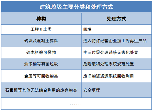雖然各地的分類標(biāo)準(zhǔn)也存在差異,但達(dá)到資源較大程度的利用是建筑垃圾分類處置的初衷。綜合來看,很多地方的處理方式都大同小異,具體如下: