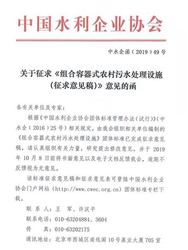 近日,中國水利企業(yè)協(xié)會團體標準——《組合容器式農(nóng)村污水處理設施》征求意見,標準規(guī)定了組合容器式農(nóng)村污水處理設施的定義,設計水量和水質,分類和型號,處理工藝,容器結構和材料,性能和測試方法,檢驗規(guī)則,標志、運輸、儲存等。標準適用于農(nóng)村地區(qū)集中式以及分散式農(nóng)戶新建、擴建和改建的污水處理設施,城區(qū)可參照執(zhí)行。