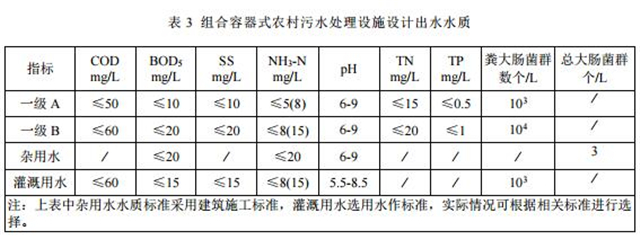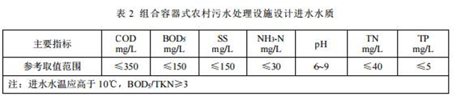 4.2.1 設計進水水質一般應通過實地調查結果確定。組合容器式農(nóng)村污水處理設施的設計進水水質見表 2。