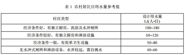 污水設計排放水量根據(jù)實地調查結果確定。當調查數(shù)據(jù)缺乏時,應結合當?shù)赜盟F(xiàn)狀、生活習慣、經(jīng)濟條件、地區(qū)規(guī)劃等酌情確定,也可參考表 1,通過排放系數(shù)確定污水量。農(nóng)村生活污水排水量一般為總用水量的 40%~80%,排水設施完善的地區(qū)可取上限值,排水設施不完善的地區(qū)視具體情況取中值或下限值。