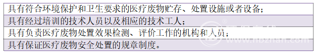 2005年出臺的《醫(yī)療廢物管理條例》中明確規(guī)定,從事醫(yī)療廢物集中處置活動的單位,應(yīng)當(dāng)向縣級以上人民政府環(huán)境保護行政主管部門申請領(lǐng)取經(jīng)營許可證;未取得經(jīng)營許可證的單位,不得從事有關(guān)醫(yī)療廢物集中處置的活動。并且,醫(yī)療廢物集中處置單位,應(yīng)當(dāng)符合下列條件: