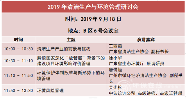 除此之外,還包括2019年清潔生產(chǎn)與環(huán)境管理研討會、廣東省環(huán)境保護產(chǎn)業(yè)協(xié)會第五屆理事會第九次會議、科威納華南環(huán)保產(chǎn)業(yè)技術(shù)峰會、廣東省生態(tài)環(huán)境廳“送技術(shù)服務(wù)進企業(yè)”玻璃行業(yè)專題宣講會、一刻講臺IETalks、大灣區(qū)建設(shè)形勢下紡織印染行業(yè)環(huán)保技術(shù)研討會和2019第七屆華南環(huán)境產(chǎn)業(yè)發(fā)展論壇7場論壇。