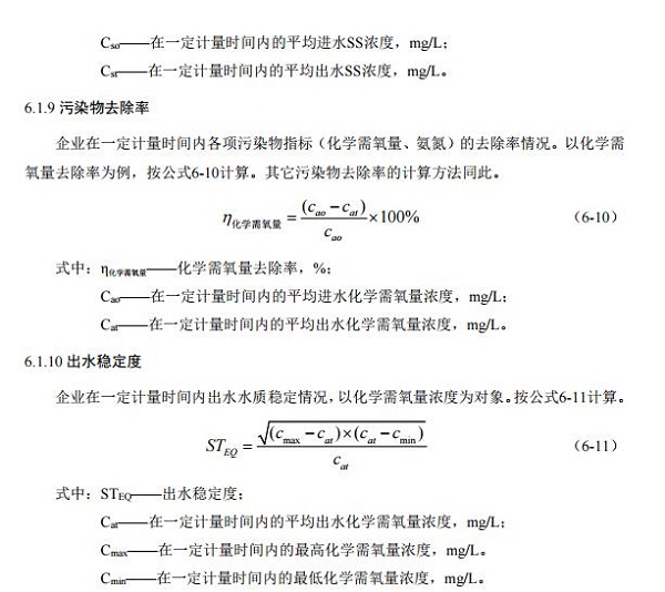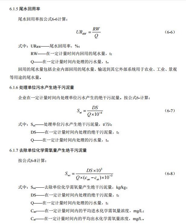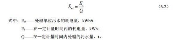 企業(yè)在一定計(jì)量時(shí)間內(nèi)處理單位污水需要消耗的用電量,耗電量?jī)H計(jì)算處理污水達(dá)到要求的排放標(biāo)準(zhǔn)時(shí)所消耗的電量,不含再生利用過程消耗的電能(同時(shí)包括辦公使用的耗電量,不包括基建、生活用耗電量等)。按公式6-2計(jì)算: