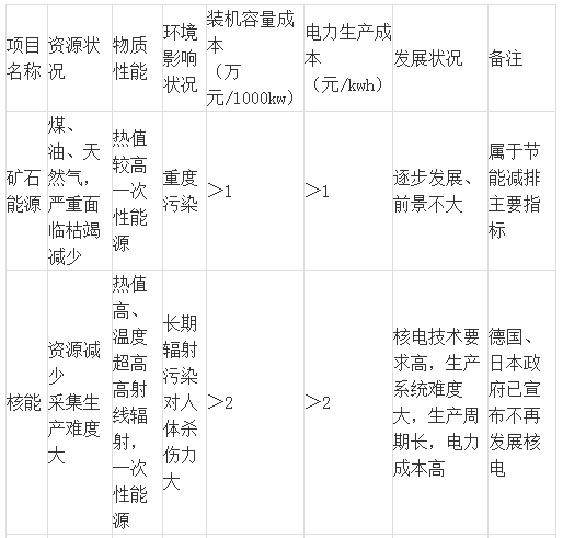 附錄:各種能源、資源成本、性能優(yōu)益對比表