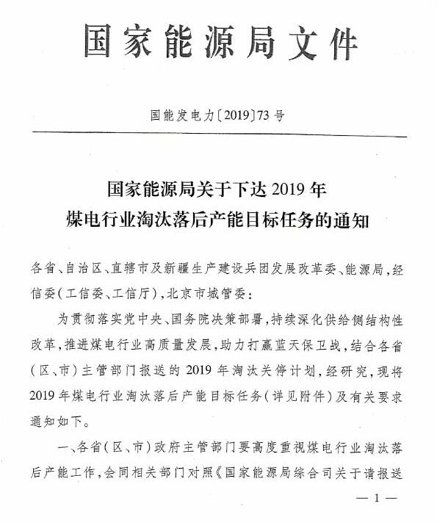 日前,國家能源局發(fā)布了《關于國家能源局關于下達2019年煤電行業(yè)淘汰落后產能目標任務的通知》(以下簡稱:《通知》),對今年煤電落后產能淘汰工作下達了任務量。
