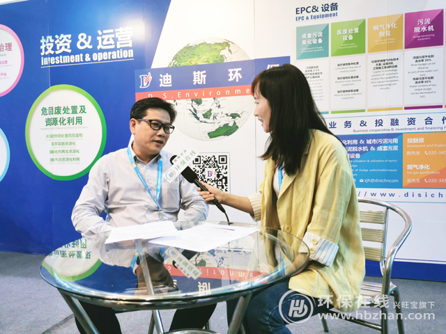 迪斯環(huán)保副總裁朱劍輝(左一)接受本網(wǎng)專(zhuān)訪(fǎng)