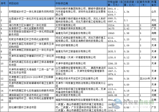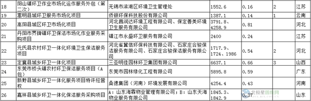 附千萬(wàn)級(jí)以上環(huán)衛(wèi)項(xiàng)目中標(biāo)情況匯總