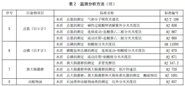 5.3 本標(biāo)準(zhǔn)各項(xiàng)目監(jiān)測(cè)分析方法按照表2 執(zhí)行。本標(biāo)準(zhǔn)發(fā)布后,國(guó)家新發(fā)布的其他相關(guān)監(jiān)測(cè)分析方法也可作為本標(biāo)準(zhǔn)的監(jiān)測(cè)分析方法。