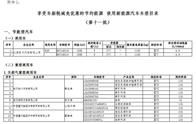 關(guān)于對《享受車船稅減免優(yōu)惠的節(jié)約能源 使用新能源汽車車型目錄》(第十一批)的公示