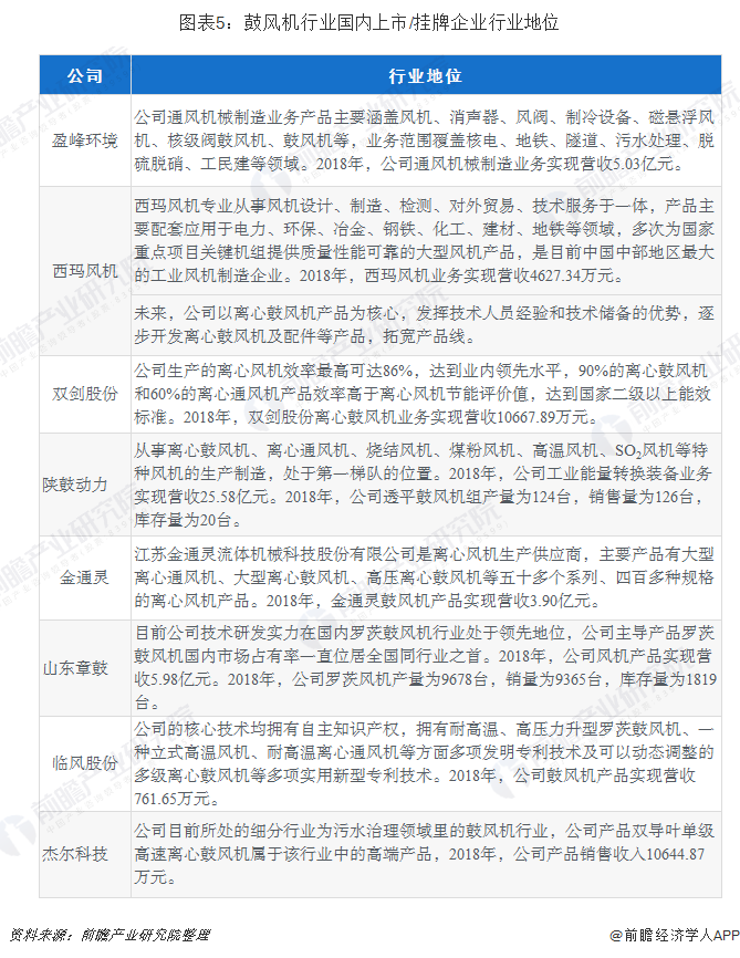 截止到2019年8月,涉及到鼓風機業(yè)務的上市/掛牌公司共有8家。以陜鼓動力為代表的上市領(lǐng)先企業(yè),無論是工業(yè)總產(chǎn)值還是主營業(yè)務收入等指標,占據(jù)行業(yè)的權(quán)重均較大,說明行業(yè)集中度較高。