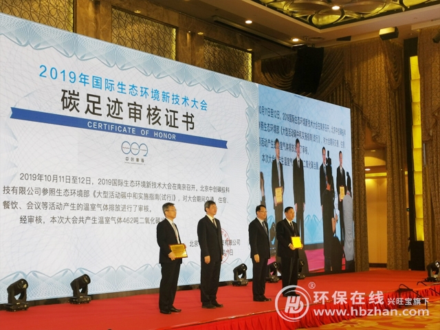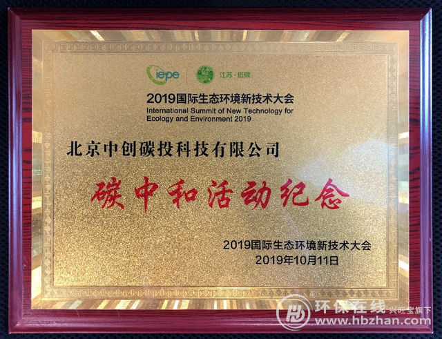 圖為2019國(guó)際生態(tài)環(huán)境新技術(shù)大會(huì) 中創(chuàng)碳投榮獲證書