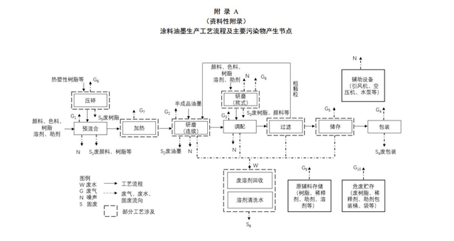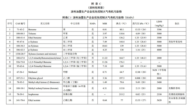 原輔料和危險(xiǎn)廢物貯存。顆粒物主要產(chǎn)生于固體原輔料的投料、預(yù)混合、研磨、調(diào)配和過(guò)濾工序。涂料油墨不同生產(chǎn)工藝類型單位產(chǎn)品VOCs 基準(zhǔn)產(chǎn)生量及產(chǎn)生濃度水平見(jiàn)附錄B,涂料油墨生產(chǎn)企業(yè)應(yīng)優(yōu)先控制的大氣有機(jī)污染物見(jiàn)附錄C。