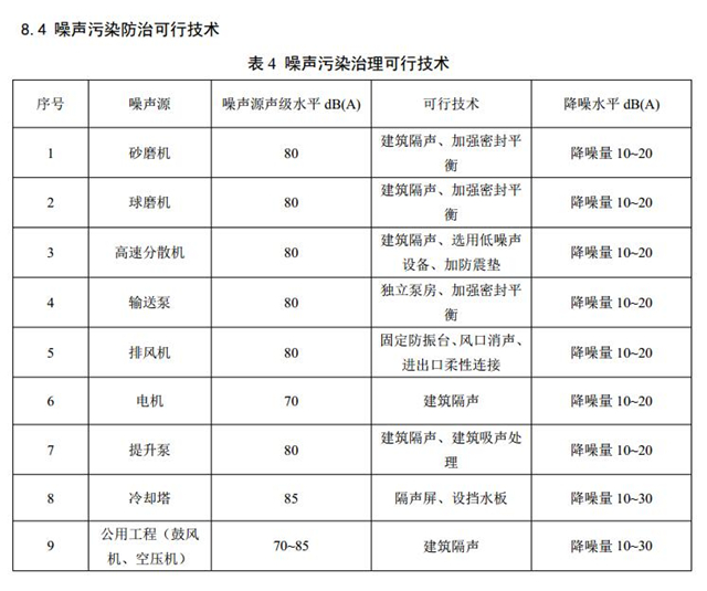 4.2.1.4 涂料工業(yè)企業(yè)產(chǎn)生的噪聲主要來(lái)自于生產(chǎn)過(guò)程中使用的生產(chǎn)設(shè)備(如砂磨機(jī)、球磨機(jī)、高速分散機(jī)、輸送泵等)和輔助生產(chǎn)設(shè)備(如排風(fēng)機(jī)、電機(jī)、提升泵、鼓風(fēng)機(jī)、空壓機(jī)等)運(yùn)行。