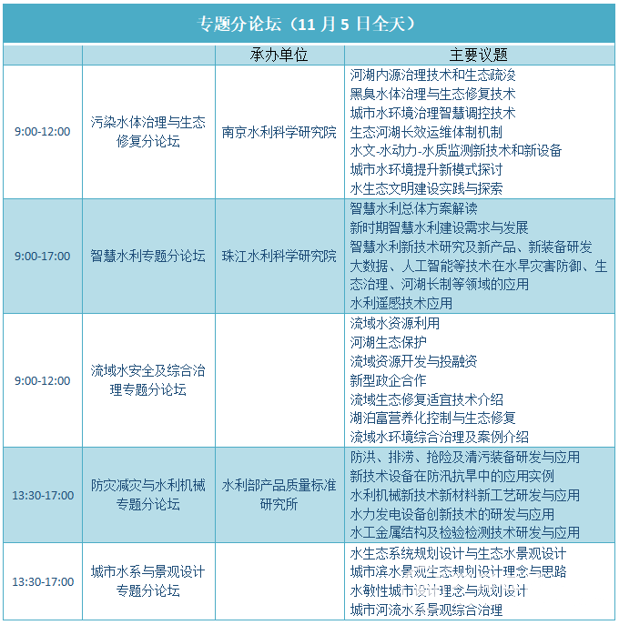 具體聊什么?在11月5日的論壇現(xiàn)場,強勁的專家陣容及企業(yè)代表將通過上述主題切入新時期水利工作重點及方向、強監(jiān)管與補短板、污染水體治理與生態(tài)修復、智慧水利、水利機械設備、防災減災、流域水安全與綜合治理板塊,全面解析水環(huán)境治理市場格局如何重構(gòu)和變革,提前劇透一下: