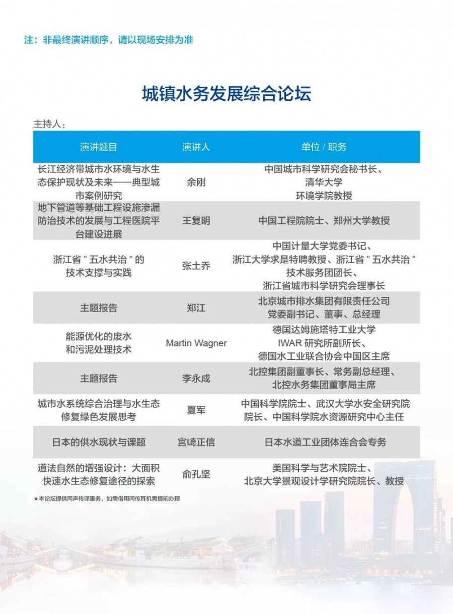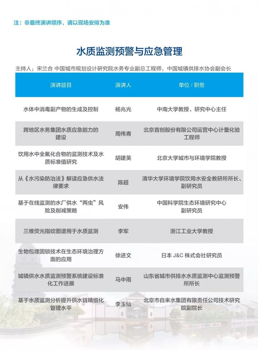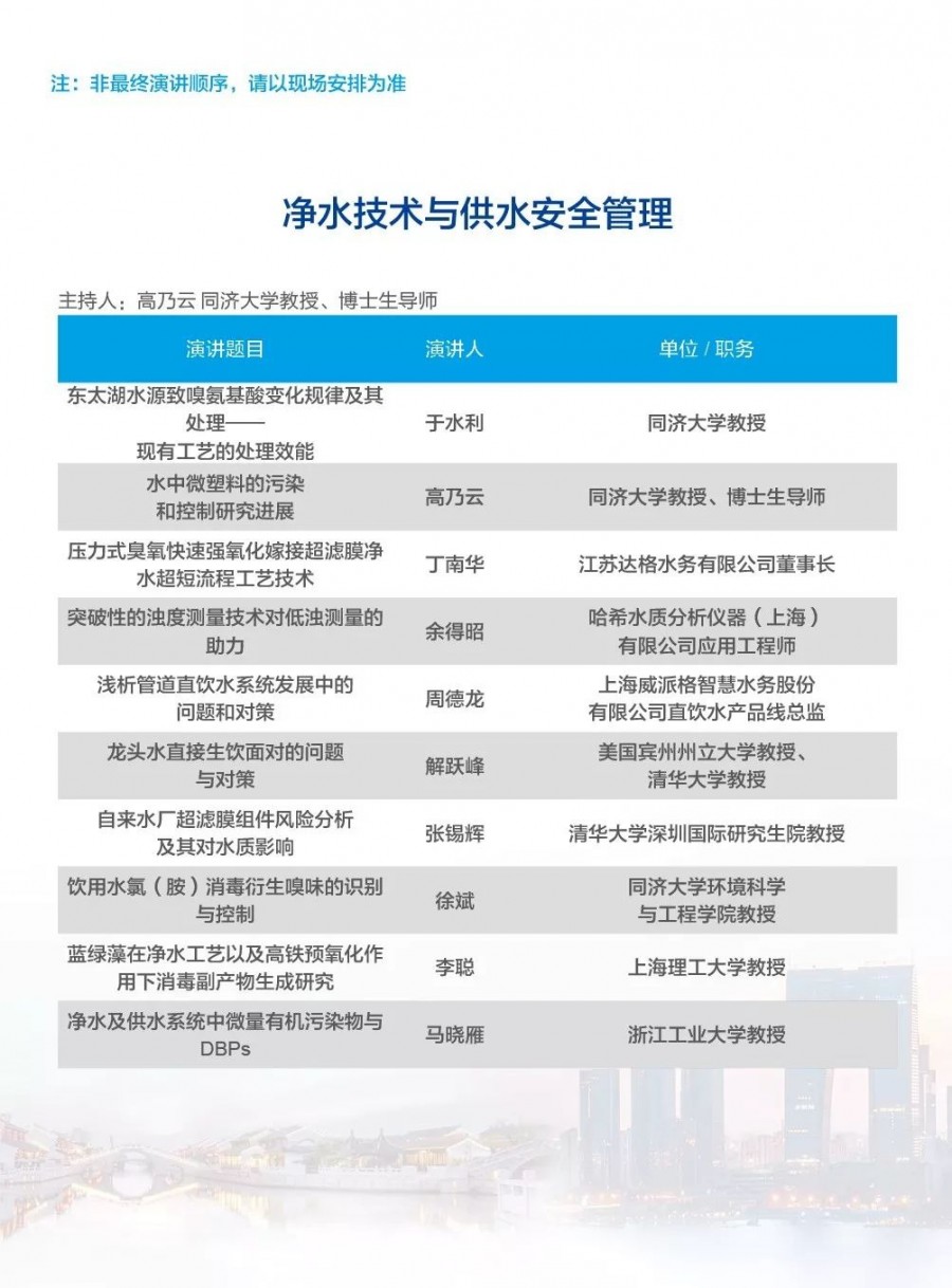 除以上分論壇外,蘇州論壇——高品質(zhì)水公共產(chǎn)品研討會、建筑節(jié)水論壇、二供節(jié)能與供水安全保障、城鎮(zhèn)水環(huán)境綜合整治與管理、中-法水務(wù)科技論壇、長三角一體化水務(wù)發(fā)展論壇等論壇議程正在確認(rèn)中……敬請期待!