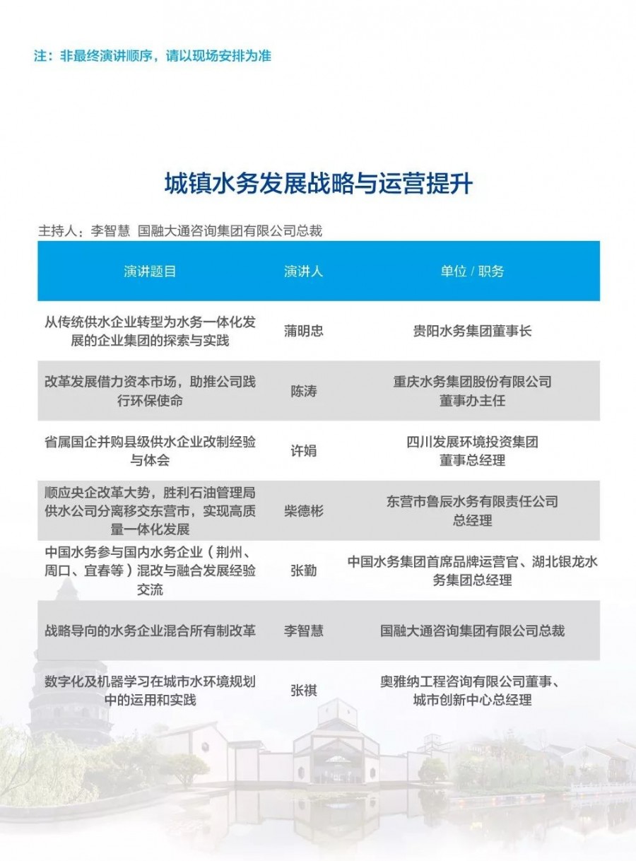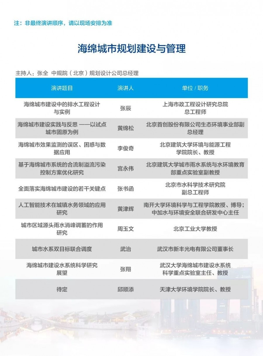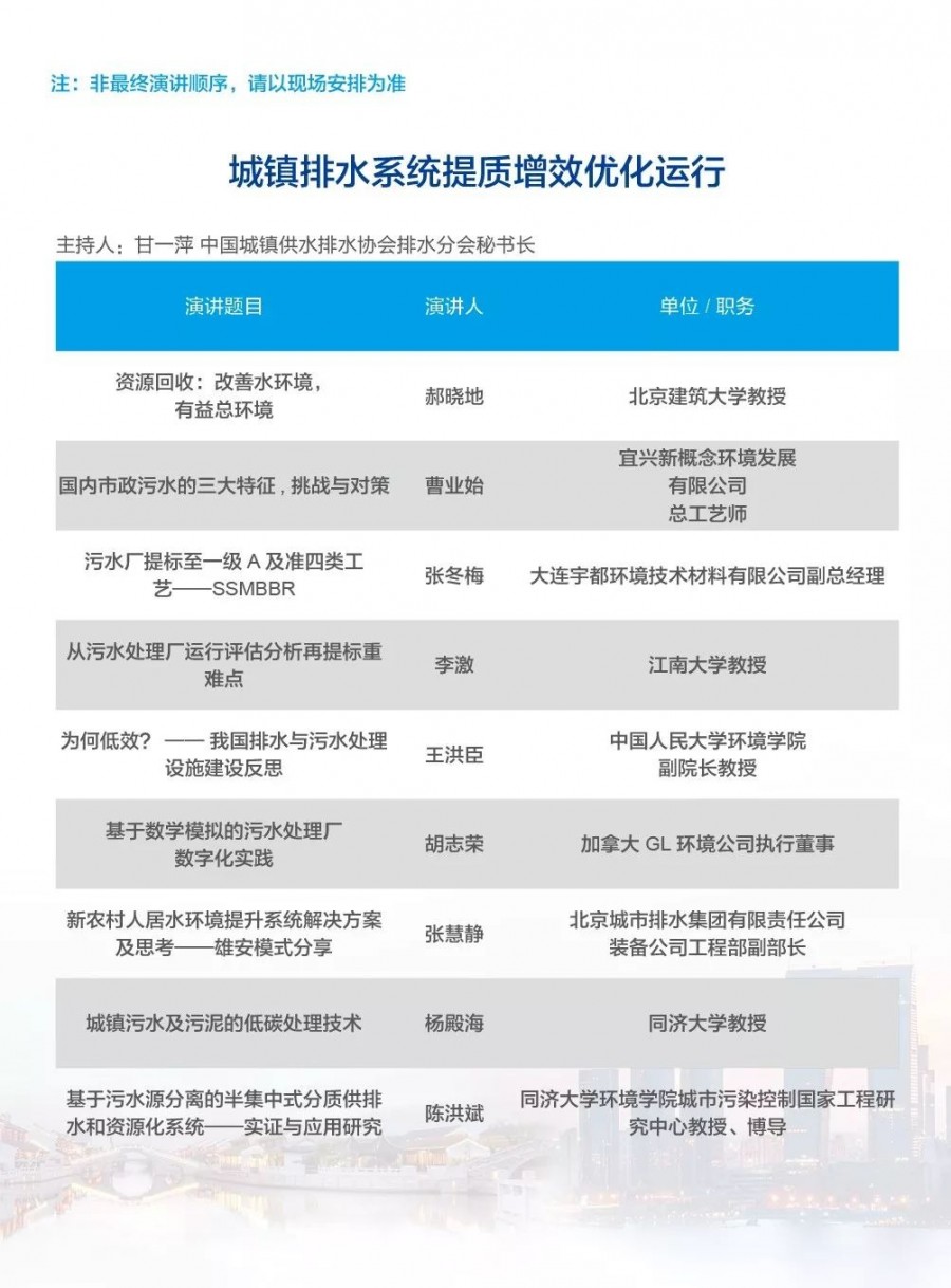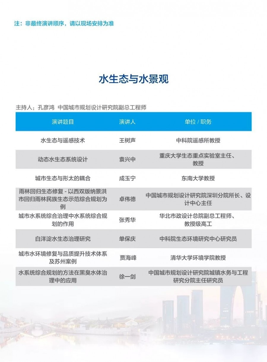 除以上分論壇外,蘇州論壇——高品質(zhì)水公共產(chǎn)品研討會、建筑節(jié)水論壇、二供節(jié)能與供水安全保障、城鎮(zhèn)水環(huán)境綜合整治與管理、中-法水務(wù)科技論壇、長三角一體化水務(wù)發(fā)展論壇等論壇議程正在確認(rèn)中……敬請期待!