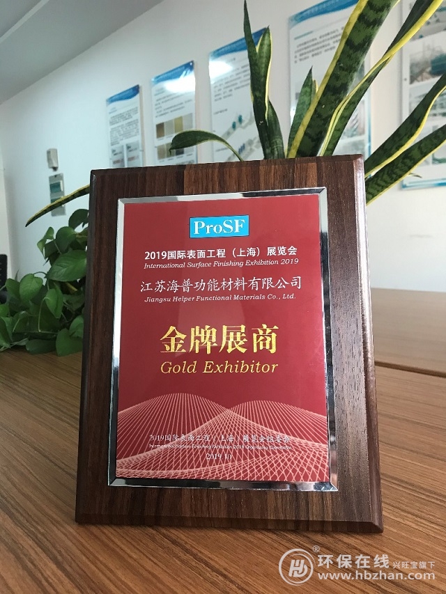 江蘇海普的特種吸附材料和電鍍廢水處理技術(shù)在展會上吸引了許多電鍍相關(guān)環(huán)保需求企業(yè)的駐足,而海普也榮獲了組委會頒發(fā)的“金牌展商”榮譽稱號。