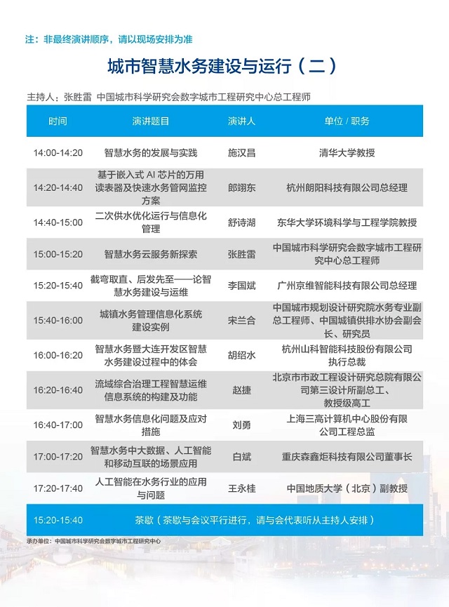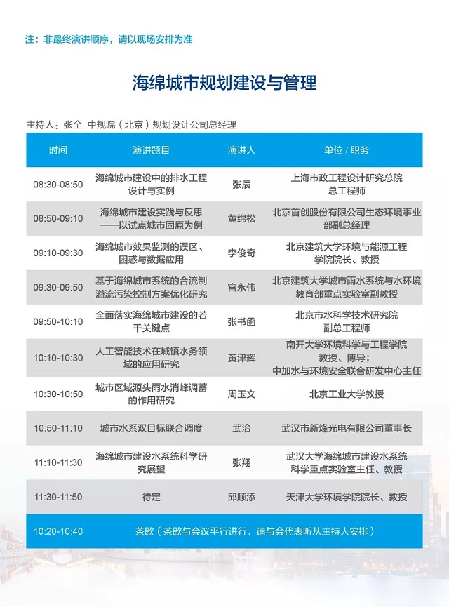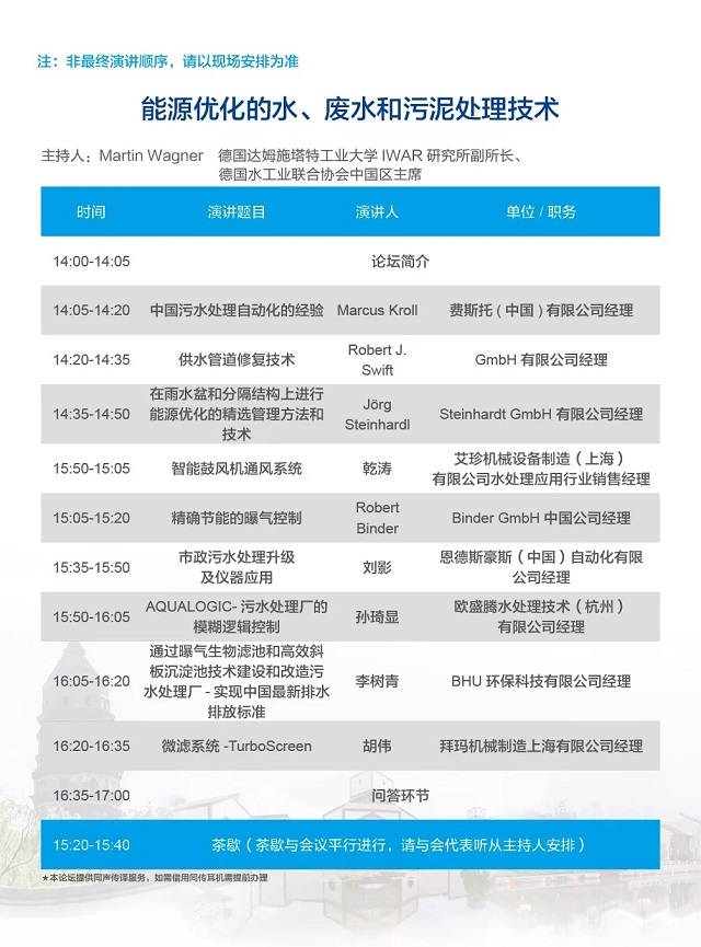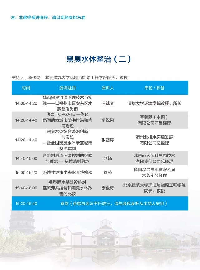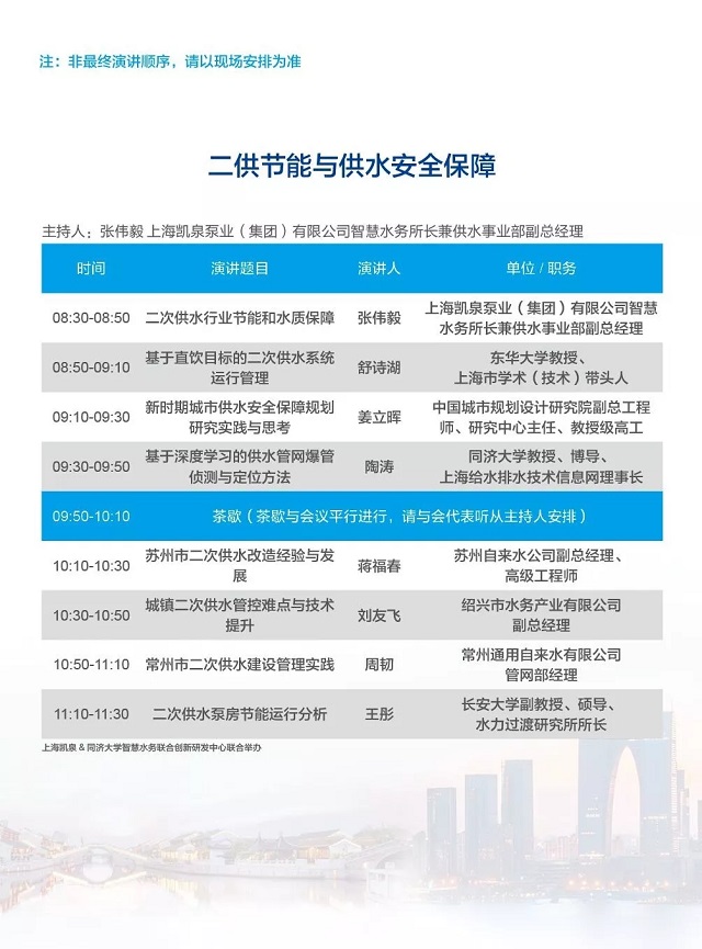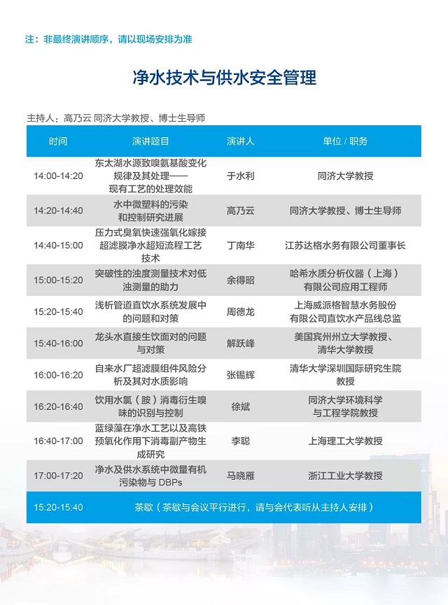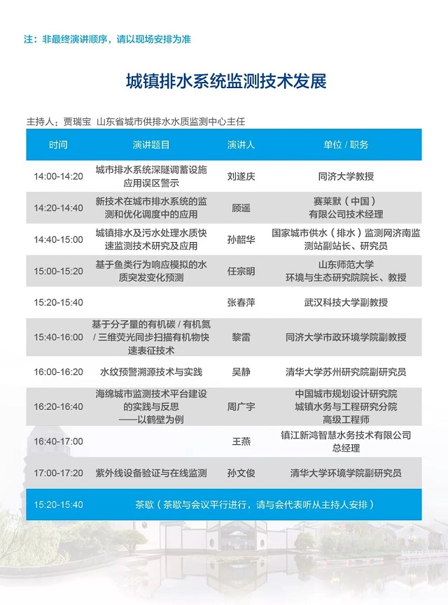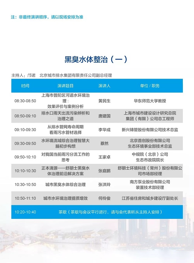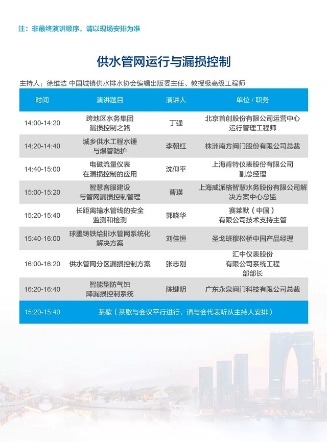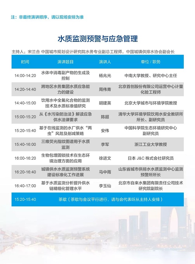 除以上分論壇外,蘇州論壇——高品質(zhì)水公共產(chǎn)品研討會、建筑節(jié)水論壇、城鎮(zhèn)水環(huán)境綜合整治與管理、中-法水務(wù)科技論壇等論壇議程正在確認中……敬請期待!
