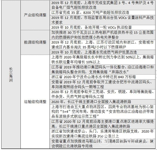 長三角地區(qū)——①調(diào)整化工、鋼鐵等產(chǎn)業(yè)結(jié)構(gòu),加大VOCs綜合治理水平②控制煤炭消耗量,開展生物質(zhì)鍋爐整治③調(diào)整貨物運(yùn)輸結(jié)構(gòu),淘汰老舊車船,加強(qiáng)車用油品監(jiān)管。