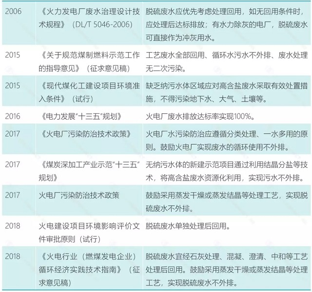 在這樣的行業(yè)大背景下,雖然近幾年工業(yè)廢水零排放的政策及議案不斷被提出或試行,對資金和技術(shù)均要求極高的零排放企業(yè)紛紛冷靜下來,面對動輒幾千萬上億元的高能耗設(shè)備,在決策之時慎之又慎。目前,仍沒有出現(xiàn)任何行業(yè)巨頭,哪怕多數(shù)零排放企業(yè)都有國資背景,也沒有形成獨霸一方之勢,這是每個企業(yè)的機(jī)遇。同時,零排放之所以備受關(guān)注,一方面在于這是必然趨勢,另一方面在于難,企業(yè)家們希望在出臺技術(shù)規(guī)范之時掌握話語權(quán),建立起技術(shù)壁壘,抓住先機(jī)。目前中國尚沒有非常嚴(yán)格的法規(guī)或者標(biāo)準(zhǔn)規(guī)定煤化工廢水或火電脫硫廢水必須零排放,但近幾年關(guān)于煤化工及火電行業(yè)廢水回用不外排的政策頻出,其中包括: