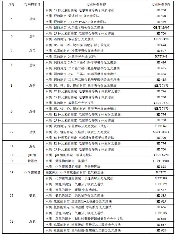 6.2.4 本標(biāo)準(zhǔn)實(shí)施后國(guó)家發(fā)布的污染物監(jiān)測(cè)方法標(biāo)準(zhǔn),如適用性滿足要求,同樣適用于本標(biāo)準(zhǔn)相應(yīng)污染物的測(cè)定。