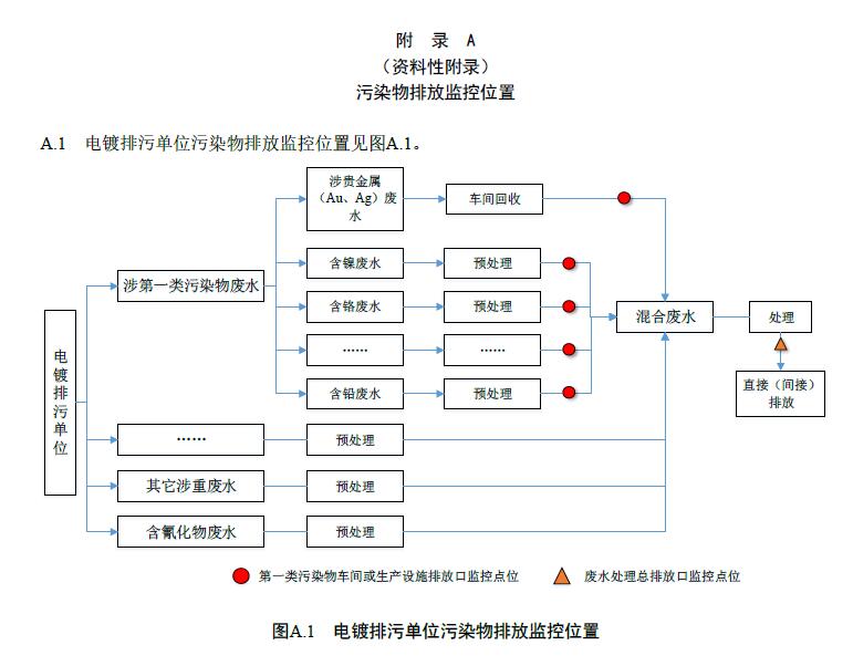 6.1.1 電鍍排污單位和專門處理電鍍廢水的集中式污水處理廠應(yīng)按照環(huán)境監(jiān)測(cè)管理規(guī)定和技術(shù)規(guī)范的要求,設(shè)計(jì)、建設(shè)、維護(hù)永久性采樣口、采樣測(cè)試平臺(tái)和排污口標(biāo)志。