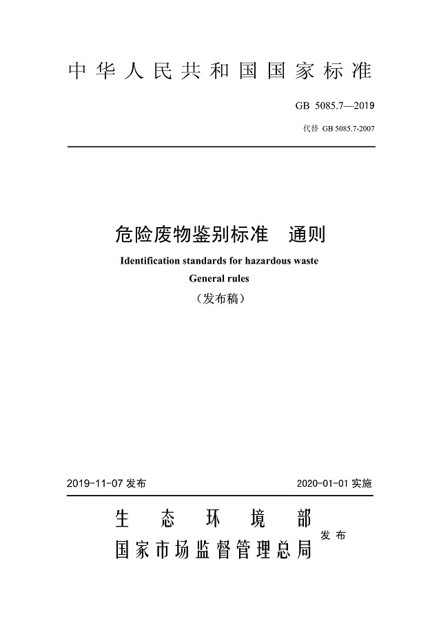 關(guān)于發(fā)布《危險(xiǎn)廢物鑒別標(biāo)準(zhǔn) 通則》(GB 5085.7-2019)的公告