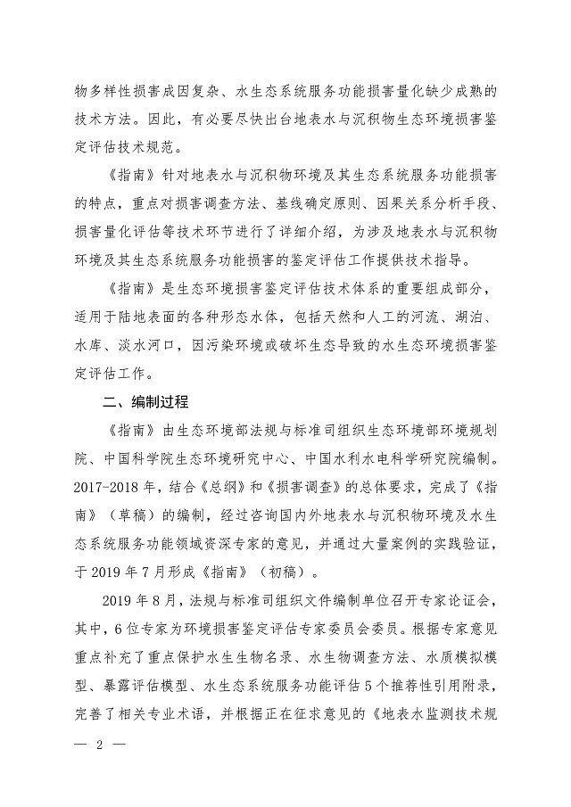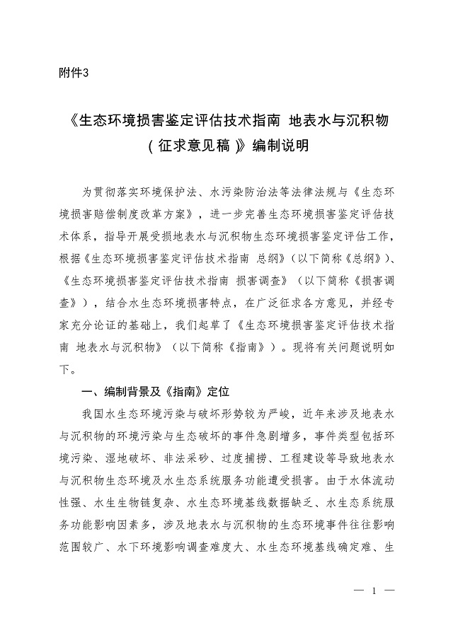 3.《生態(tài)環(huán)境損害鑒定評估技術(shù)指南 地表水與沉積物(征求意見稿)》編制說明