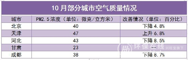 除此之外,全國(guó)多個(gè)地方的空氣質(zhì)量也取得了明顯的改善,尤其是像北京、天津和河北等城市,秋冬大氣污染治理首月進(jìn)展也比較順利,具體如下: