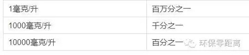 一般來說,廢水中的有機(jī)物質(zhì)和無機(jī)物質(zhì)的含量是很小很小的,如果用百分濃度或其他濃度來表示則太麻煩太不方便了,譬如一噸廢水中往往只有幾克、幾十克、幾百克甚至幾千克污染物質(zhì),其單位即為克/噸(g/T),如將噸換算成升即為毫克/升(mg/L)。計(jì)算時(shí)可參考下表換算: