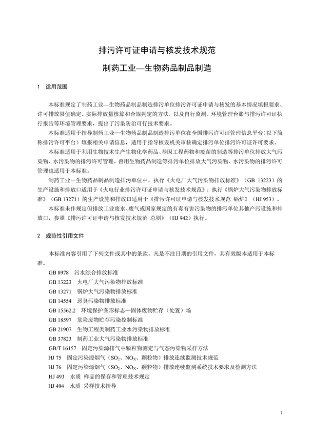 排污許可證申請與核發(fā)技術規(guī)范 制藥工業(yè)—生物藥品制品制造
