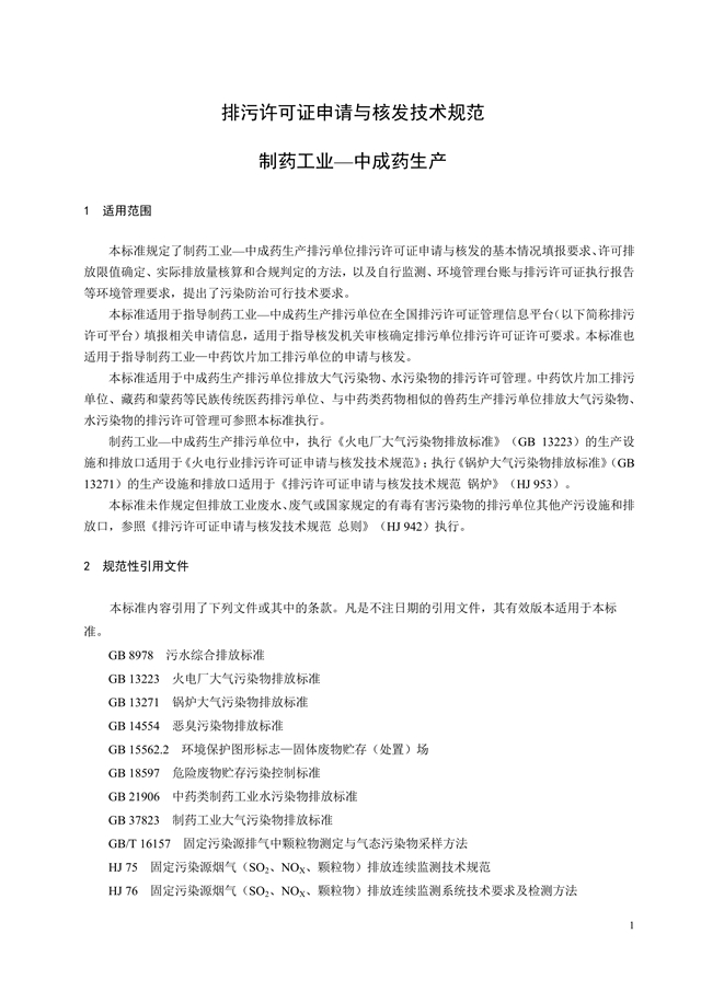 排污許可證申請與核發(fā)技術(shù)規(guī)范 制藥工業(yè)—中成藥生產(chǎn)