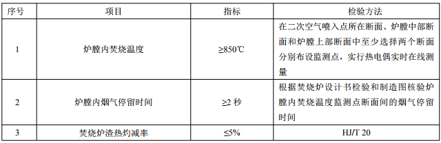關(guān)于垃圾焚燒爐爐膛內(nèi)焚燒溫度、爐膛內(nèi)煙氣停留時(shí)間和焚燒爐渣熱灼減率: