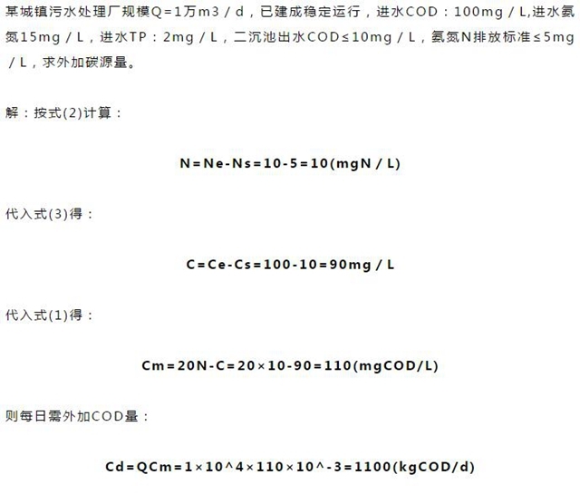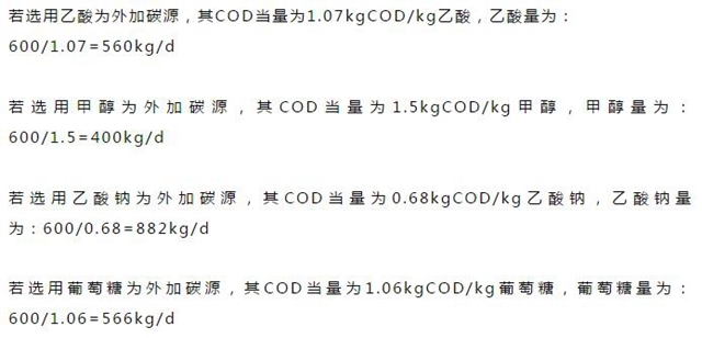 普通活性污泥法中CNP比100:5:1,在實際污水處理中TP往往是過量的,很多需要配合化學(xué)除磷達(dá)標(biāo),所以以TP計算的碳源往往會偏大,實際中以氨氮的量來計算碳源的投加量。