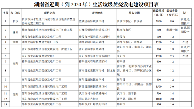 到2020年,湖南全省生活垃圾焚燒發(fā)電處理量占無(wú)害化處理量的40%。