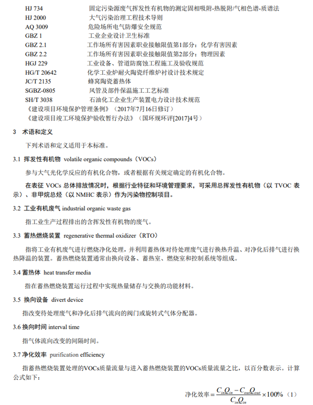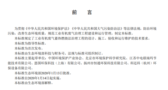 防治環(huán)境污染,改善生態(tài)環(huán)境質(zhì)量,規(guī)范工業(yè)有機(jī)廢氣治理工程建設(shè)和運(yùn)行管理,生態(tài)環(huán)境部制定《蓄熱燃燒法工業(yè)有機(jī)廢氣治理工程技術(shù)規(guī)范》,對(duì)工業(yè)有機(jī)廢氣蓄熱燃燒法治理工程的設(shè)計(jì)、施工、驗(yàn)收和運(yùn)行維護(hù)等提出了技術(shù)要求,于2020年1月14日開始實(shí)施。具體如下:
