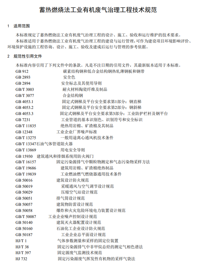 蓄熱燃燒法工業(yè)有機(jī)廢氣治理工程技術(shù)規(guī)范
